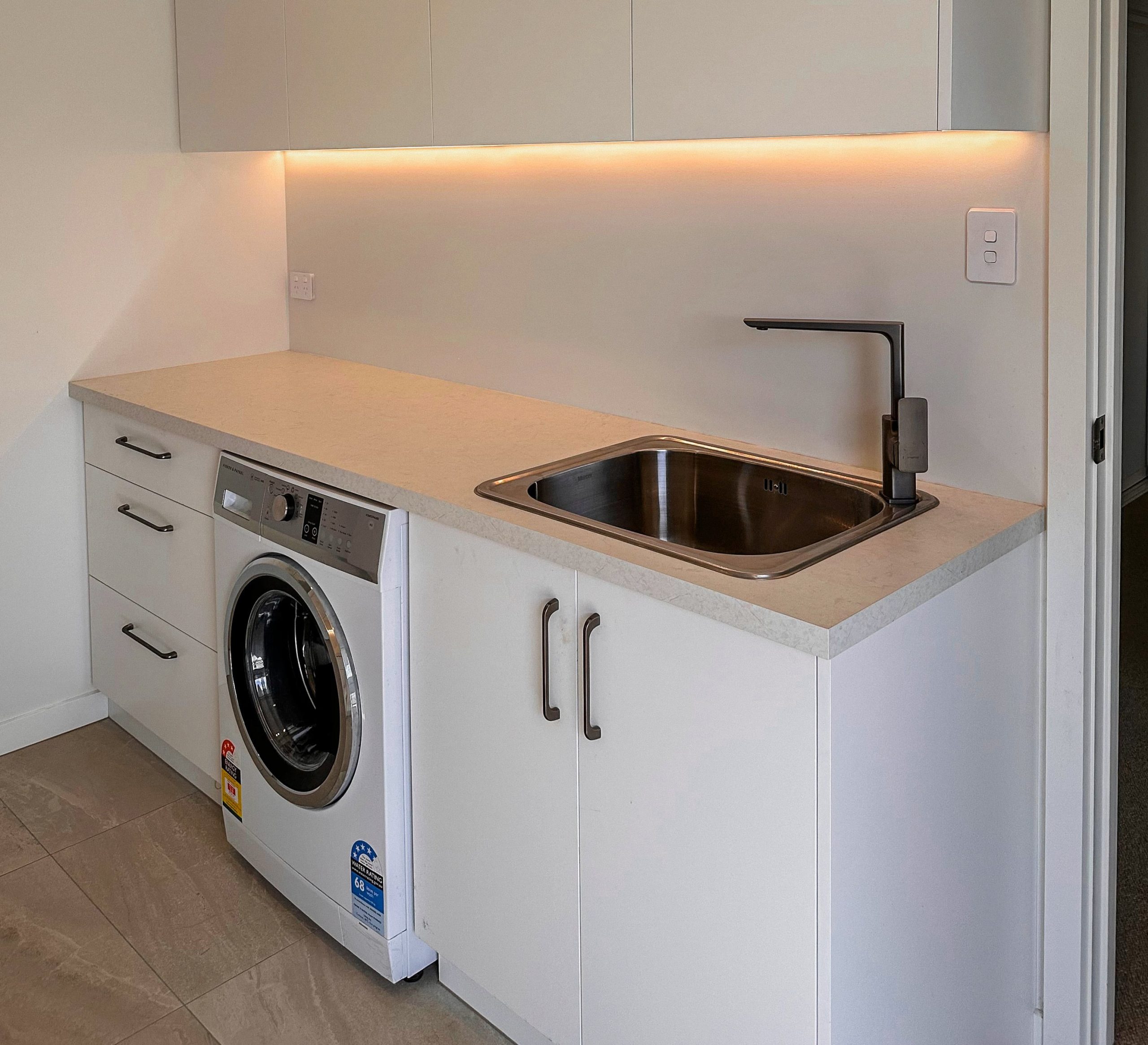 A custom laundry can make a big difference in daily life. Turning your laundry into an organised and functional space makes the most mundane chores easier. We can work with you to incorporate clever design details like easy-access hampers, hanging rails, and durable finishes where you need them most.
